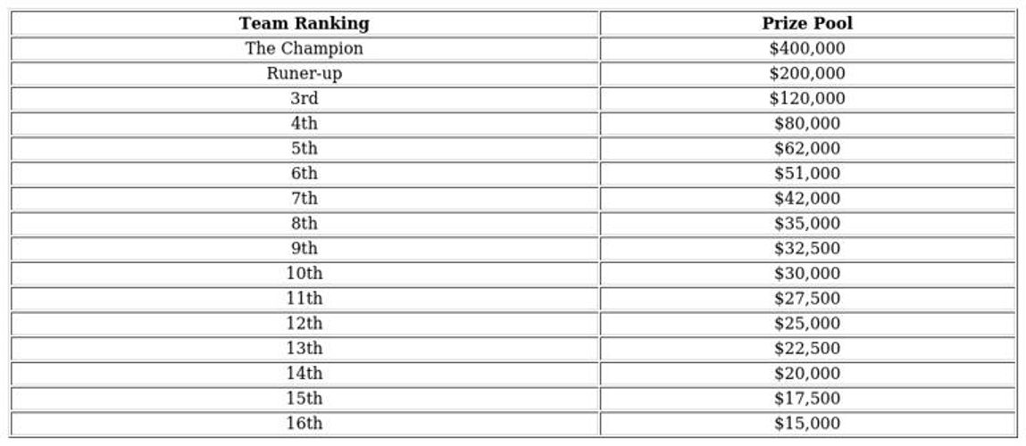 The distribution of the prize pool highlighted the financial rewards for all competing teams.
