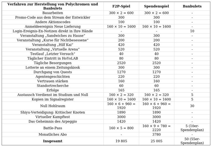 Für Free-to-Play-Spieler ergeben sich insgesamt etwa 14 Polychrome, was ungefähr 525 Drehungen entspricht. Zusätzlich können sie 91 Event- und 15 Standard-Drehungen sowie 18 Banbulets ergattern.