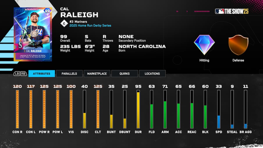 Acquiring the Home Run Derby version of Cal Raleigh, a 99 overall switch-hitter, involves completing the 2025 Home Run Derby collection in MLB The Show 25. This process is notably costly and requires significant effort.