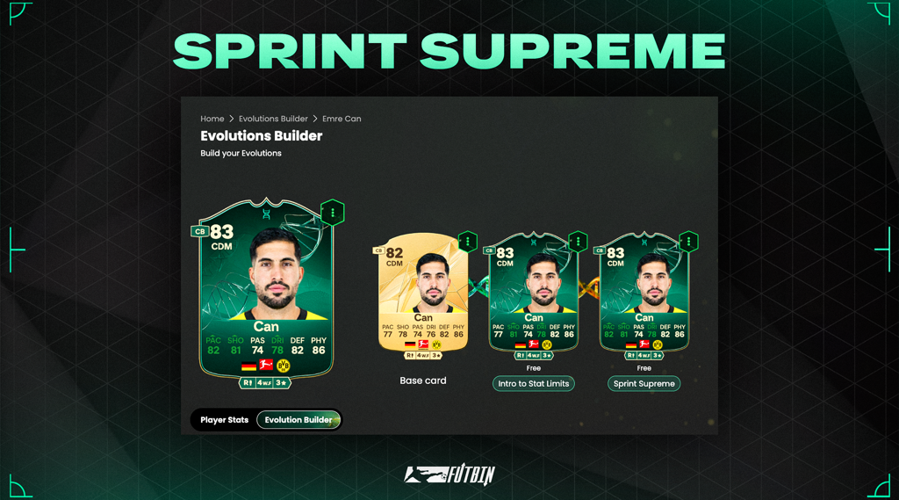 Emre Can’s Evolution mirrors that of Varane, making use of both Intro to Stat Limits and Sprint Supreme. His base version consistently stands out as a strong choice at the start of Ultimate Team, so including him in these recommendations was an easy decision.