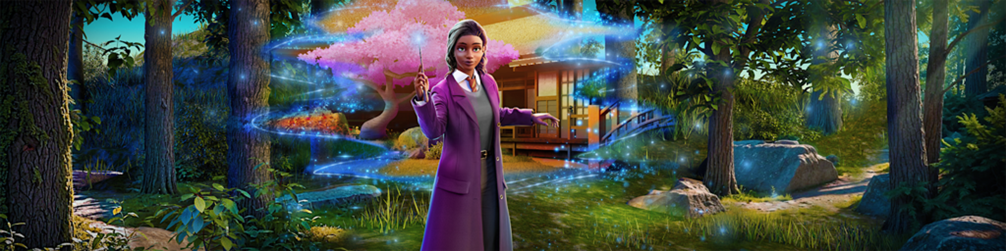 As you wander through the garden of secrets, keep your eyes peeled for any sign that might lead to reuniting a family torn apart by unexplained absence.The road winds out to a secluded country retreat, where a tucked-away garden awaits in calming solitude.Winding paths, gentle fountains and lush greenery invite you to pause and soak in a quietly magical atmosphere.Experience the magical tranquility as you encounter a picturesque wooden bridge gracefully arching over a gentle, murmuring stream. The crystalline waters below dance and whisper their ancient secrets, creating a harmonious soundtrack to your mystical journey through the enchanted landscapes of the wizarding realm.